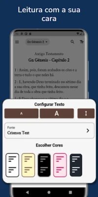 Насладете се на четене без прекъсвания, независимо дали сте в тишината на дома си, или участвате в богослужение. Bíblia Nova Versão Internacional (NVI) не включва натрапчиви реклами с видео или музика, гарантирайки, че фокусът ви остава изцяло върху текста. Приложението е проектирано с интуитивен и приятен дизайн, за да направи вашето преживяване по-привлекателно и по-малко уморително. Персонализирайте изцяло своята среда за четене – променяйте размера и стила на шрифта, избирайте предпочитани цветови схеми, за да създадете идеалната атмосфера за вашето духовно пътуване.
