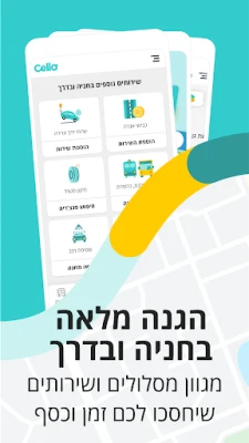 Cello обаче е много повече от просто приложение за паркиране. То е Вашият универсален спътник на пътя, който Ви позволява удобно да заплащате пътни такси за магистрали като Път 6 Север и Бързата лента. Нуждаете се от презареждане на Вашата карта за градски транспорт "Рав-Кав"? Направете го за секунди, само с доближаване на картата до телефона си. За неочаквани моменти, Cello Ви свързва с пътна помощ и спасителни услуги, предоставяни съвместно с Blue, 24/7 – независимо дали става дума за изтощен акумулатор, празен резервоар или заключена врата. Приложението също така улеснява ремонта на спукани гуми в десетки сервизи и предлага достъп до изгодно измиване на автомобила в цялата страна.