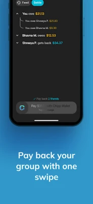 Уреждането на сметки вече е по-лесно от всякога. Само с едно плъзгане, Chipp ви позволява да погасите задължения към множество приятели едновременно. Добавяйте разходи в реално време, а Chipp се грижи за сложните изчисления, показвайки кой на кого колко дължи. А с вашия Chipp Баланс можете незабавно да изплащате или получавате своя дял, уреждайки дългове мигновено и без никакви такси. Край на жонглирането между различни приложения – Chipp е вашето цялостно решение за проследяване, разделяне и уреждане на всички разходи, удобно събрано на едно място.