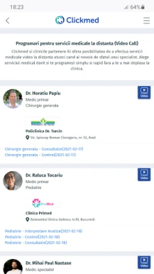Приложението Clickmed отваря врати към обширна мрежа от над 3000 лекари и над 200 партньорски медицински центъра, предлагащи повече от 500 специализирани услуги. С над 2.5 милиона свободни часа за следващите 30 дни, намирането на подходящия специалист е по-лесно от всякога. Запазването на час отнема секунди – вие избирате лекаря и удобното време за преглед, а Clickmed потвърждава веднага и изпраща напомняния чрез SMS и имейл. За тези, които ценят времето и мобилността, Clickmed предлага и възможност за видео консултации, което позволява да получите професионална помощ, където и да се намирате, без да напускате дома си.