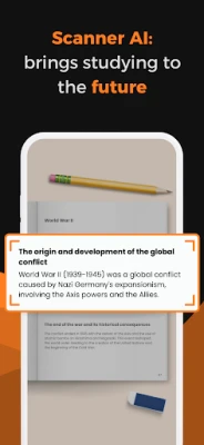 В сърцето на History Master е мощният скенер с изкуствен интелект, който променя правилата на играта. Просто направете снимка на вашите бележки или страници от учебник и гледайте как History Master незабавно ги трансформира в интелигентни мисловни карти и ефективни карти за учене. Приложението автоматично организира цялата информация, изграждайки ваш личен дигитален архив от учебни материали. Така всеки ваш писмен източник може да бъде мигновено превърнат в мощен инструмент за запаметяване и разбиране, винаги достъпен. Освен това, History Master разполага с обширна колекция от предварително подготвени мисловни карти, ясни обяснения и интерактивни викторини за всяка историческа епоха, от праисторията до наши дни.