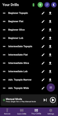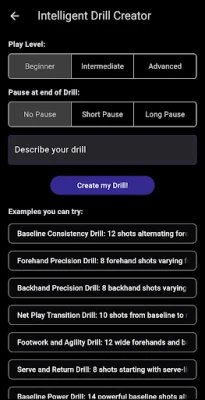 В сърцето на нашето приложение е вграден усъвършенстван AI създател на тренировки, който генерира персонализирани сценарии и ги стартира директно от вашия Wear OS часовник. Просто изречете желанието си и технологията превръща речта ви в команди. Достигнете несравнима точност с функцията за прецизно прицелване – регулирайте позицията на удара, скоростта, въртенето и други параметри с лекота, отново чрез удобството на вашия смарт часовник. Искате да промените няколко променливи наведнъж? Функцията за групови модификации позволява лесна промяна на скоростта, въртенето и височината на множество удари. Независимо от вашето ниво, приложението предлага режими за начинаещи, идеални за бързи настройки, междинни за усъвършенстване на специфични техники и напреднали за майстори на корта, предоставяйки разширен контрол директно от китката ви.
